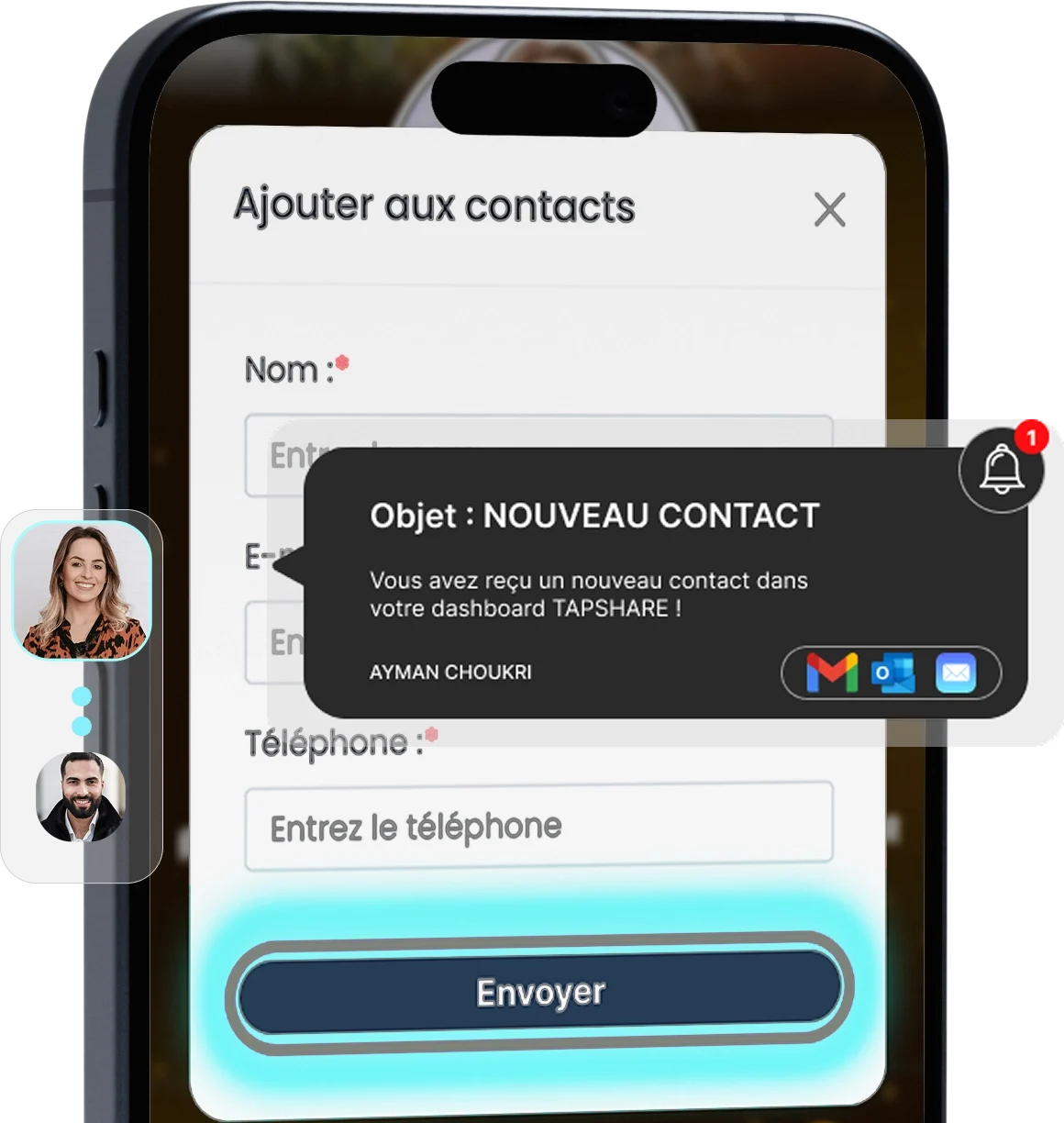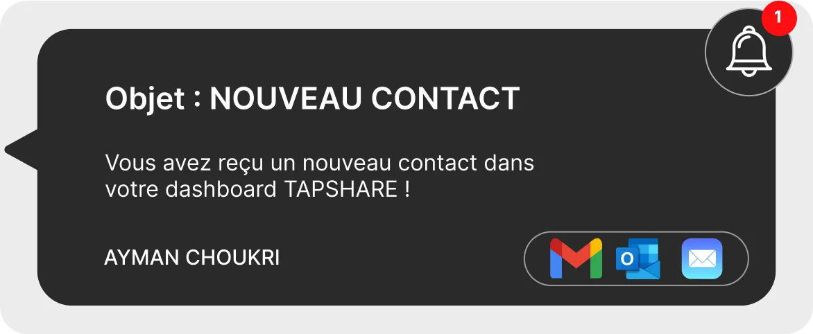 Avec TAPSHARE, ne perdez plus aucun contact ! Notre technologie vous permet non seulement de partager vos informations, mais aussi de collecter celles des personnes qui scannent votre carte.